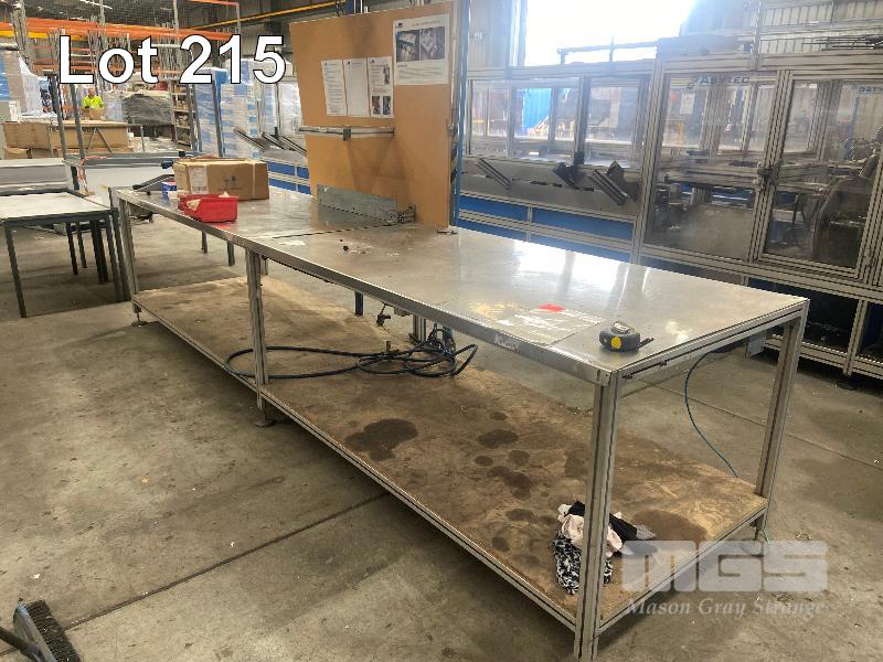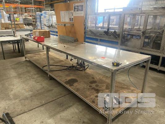STAINLESS STEEL ALLOY FRAME WORK BENCH, 4000 x 1000 x 900mm, WITH WORK LIGHT & AIR LINES, FITTED 240V & 415V GPOS