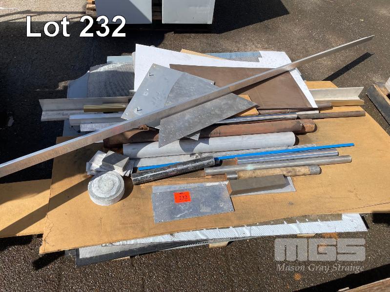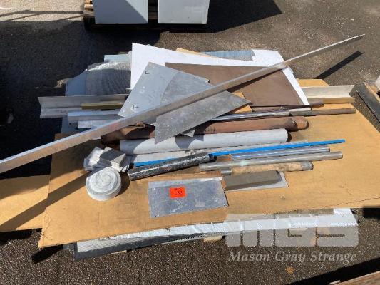 PALLET ASSORTED STEEL ROUND BAR + ALLOY SECTION OFFCUTS, STAINLESS STEEL MESH, SHEET OF OFF CUTS
