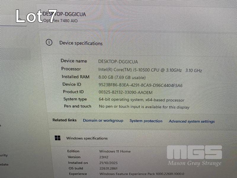 ALL-IN-ONE PC, DELL OPTIPLEX 7480, CORE i5 10500 (10TH GEN) @ 3.1GHz, 8GB DDR4 RAM, 512GB NVMe M.2 SSD, INBUILT 23.8" FHD WIDESCREEN (1920x1080), INTEL HD VIDEO, WEBCAM, 5 x USB, 1 x USB-C, Wi-Fi, BLUETOOTH, WINDOWS 11 HOME INSTALLED, KEYBOARD & MOUSE S/N:4VB2TD3