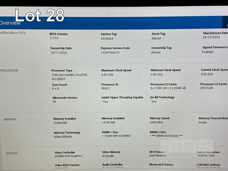 DESKTOP PC, DELL OPTIPLEX 7010 MICRO, CORE i5 13500T (13TH GEN) @ 1.6GHz, 16GB DDR4 RAM, 256GB NVMe M.2 SSD, INTEL UHD GRAPHICS, Wi-Fi, BLUETOOTH, WINDOWS 11 PRO INSTALLED, KEYBOARD, MOUSE & POWER SUPPLY (90W) S/N:63399X3