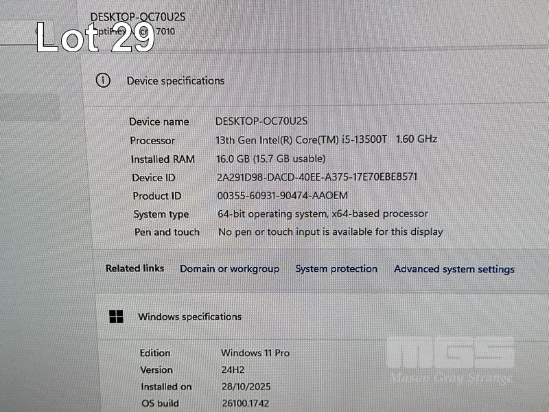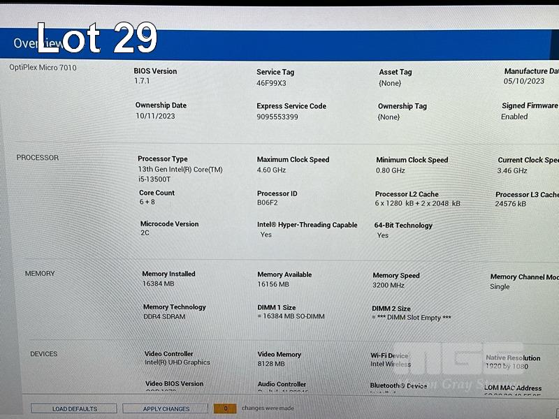 DESKTOP PC, DELL OPTIPLEX 7010 MICRO, CORE i5 13500T (13TH GEN) @ 1.6GHz, 16GB DDR4 RAM, 256GB NVMe M.2 SSD, INTEL UHD GRAPHICS, Wi-Fi, BLUETOOTH, WINDOWS 11 PRO INSTALLED, KEYBOARD, MOUSE & POWER SUPPLY (90W) S/N:46F99X3