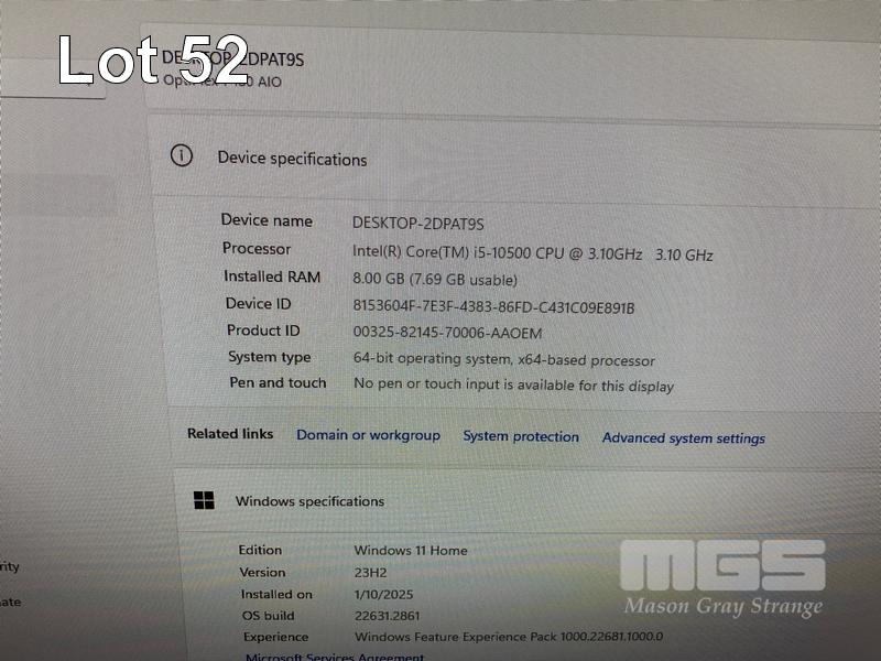 ALL-IN-ONE PC, DELL OPTIPLEX 7480, CORE i5 10500 (10TH GEN) @ 3.1GHz, 8GB DDR4 RAM, 512GB NVMe M.2 SSD, INBUILT 23.8" FHD WIDESCREEN (1920x1080), INTEL HD VIDEO, WEBCAM, 5 x USB, 1 x USB-C, Wi-Fi, BLUETOOTH, WINDOWS 11 HOME INSTALLED, KEYBOARD & MOUSE S/N:HWW54F3