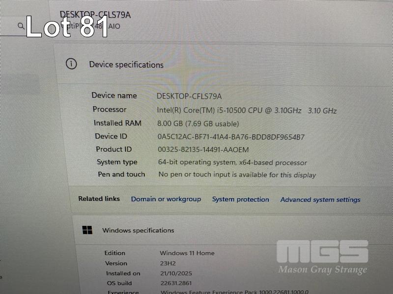 ALL-IN-ONE PC, DELL OPTIPLEX 7480, CORE i5 10500 (10TH GEN) @ 3.1GHz, 8GB DDR4 RAM, 512GB NVMe M.2 SSD, INBUILT 23.8" FHD WIDESCREEN (1920x1080), INTEL HD VIDEO, WEBCAM, 5 x USB, 1 x USB-C, Wi-Fi, BLUETOOTH, WINDOWS 11 HOME INSTALLED, KEYBOARD & MOUSE S/N:HKMWVD3