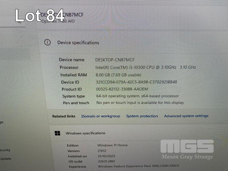 ALL-IN-ONE PC, DELL OPTIPLEX 7480, CORE i5 10500 (10TH GEN) @ 3.1GHz, 8GB DDR4 RAM, 512GB NVMe M.2 SSD, INBUILT 23.8" FHD WIDESCREEN (1920x1080), INTEL HD VIDEO, WEBCAM, 5 x USB, 1 x USB-C, Wi-Fi, BLUETOOTH, WINDOWS 11 HOME INSTALLED, KEYBOARD & MOUSE S/N:2VB2TD3
