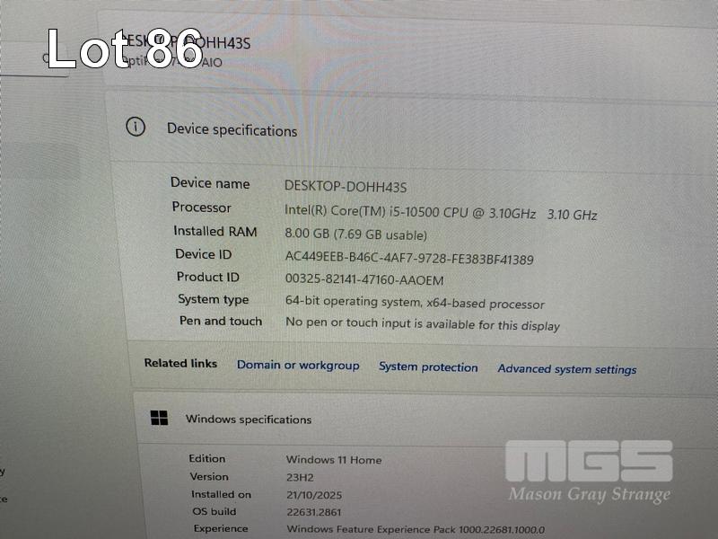 ALL-IN-ONE PC, DELL OPTIPLEX 7480, CORE i5 10500 (10TH GEN) @ 3.1GHz, 8GB DDR4 RAM, 512GB NVMe M.2 SSD, INBUILT 23.8" FHD WIDESCREEN (1920x1080), INTEL HD VIDEO, WEBCAM, 5 x USB, 1 x USB-C, Wi-Fi, BLUETOOTH, WINDOWS 11 HOME INSTALLED, KEYBOARD & MOUSE S/N:DSMWVD3