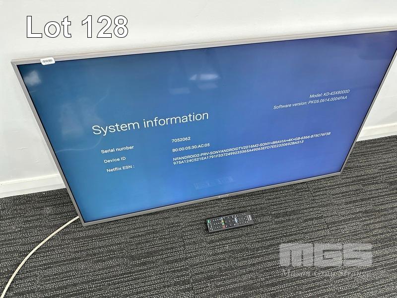 SONY 43" 4K SMART LED TV, KD-43X8000D WITH REMOTE (NO STAND) S/N:7052062