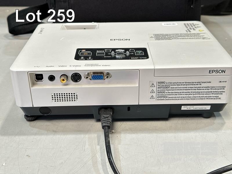 PROJECTOR, EPSON EMP-1710 3LCD XGA, 2700 LUMENS, 443 HOURS SHOWING WITH REMOTE & BAG S/N:JJEF740013L