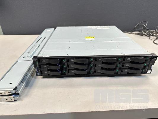 RACKMOUNT STORAGE ARRAY, IBM STORWISE V7000 EXPANSION, 2076-12F, 2U, 12 x 4TB SAS HDD, 2 x CONTROLLERS, 2 x PSU WITH RAILS (NO CABLES) S/N:78203VD