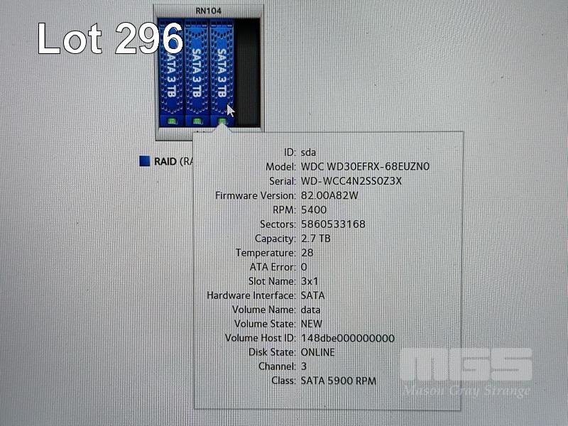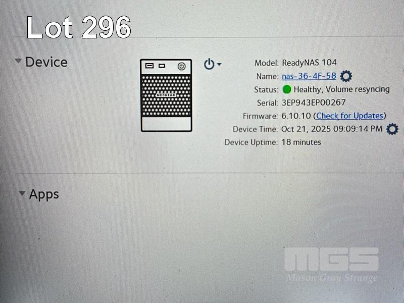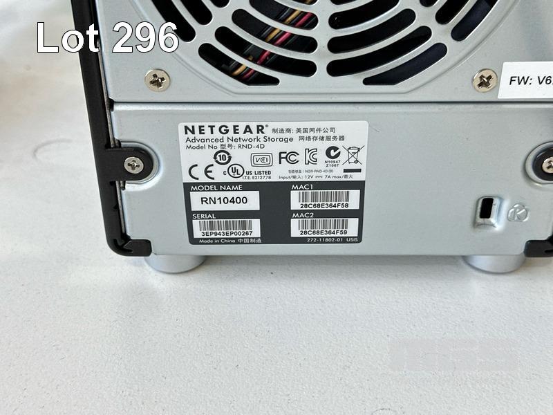 NETGEAR READYNAS ADVANCED NETWORK STORAGE, MODEL RN10400, 3 x 3TB SATA HDD WITH POWER SUPPLY S/N:3EP943EP00267