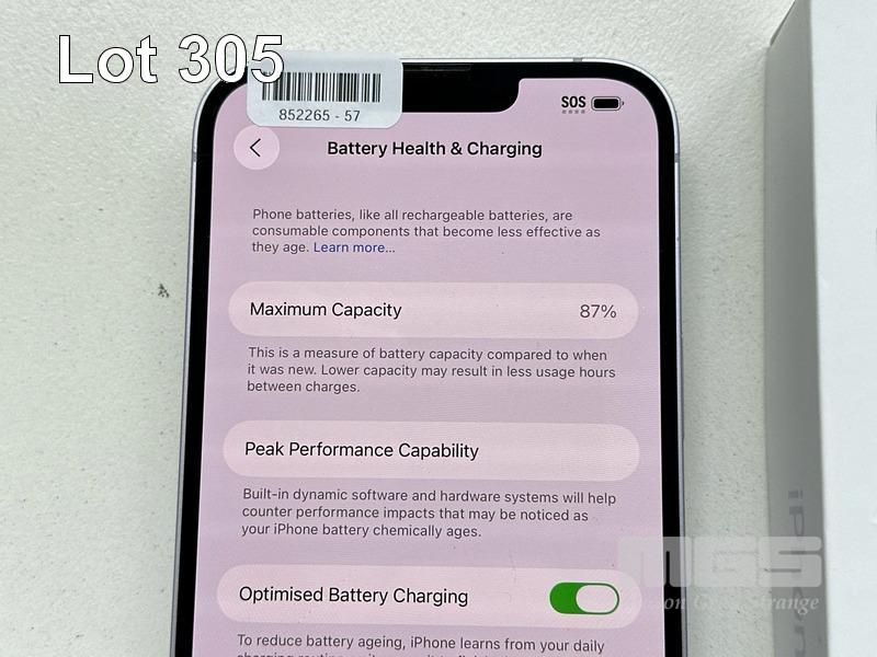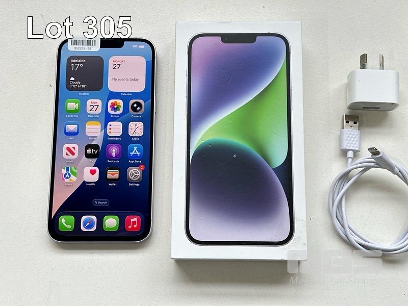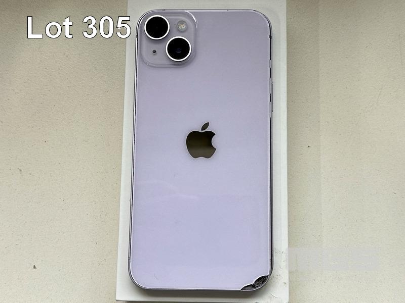 APPLE iPHONE 14 PLUS, 128GB, PURPLE, MODEL MQ503ZP/A, A2886, BATTERY HEALTH 87% WITH CABLE & CHARGER (NOTE: DAMAGE ON BACK, MINOR SCRATCHES ON SCREEN) S/N:Y67WNX7TQH