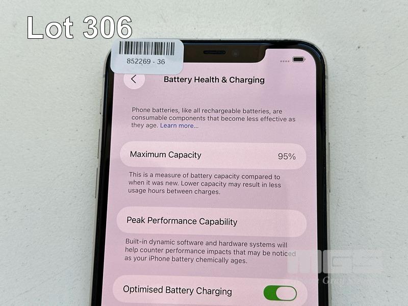 APPLE iPHONE 11 PRO MAX, 256GB, MODEL MWHK2X/A, A2218, SILVER, BATTERY HEALTH 95% (NO CABLE, NO CHARGER) (NOTE: MINOR SCRATCHES ON SCREEN) S/N:FCJC81ELN70Y
