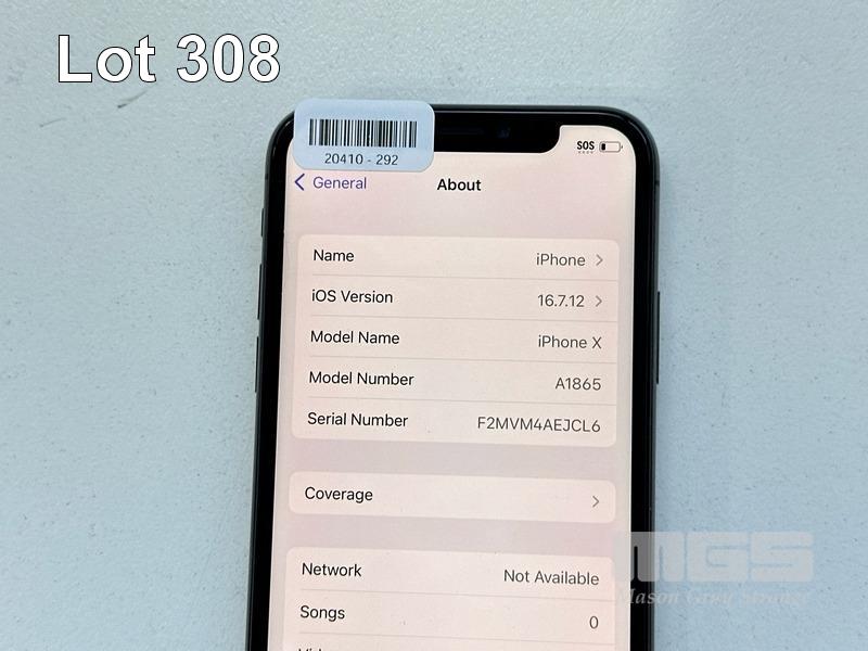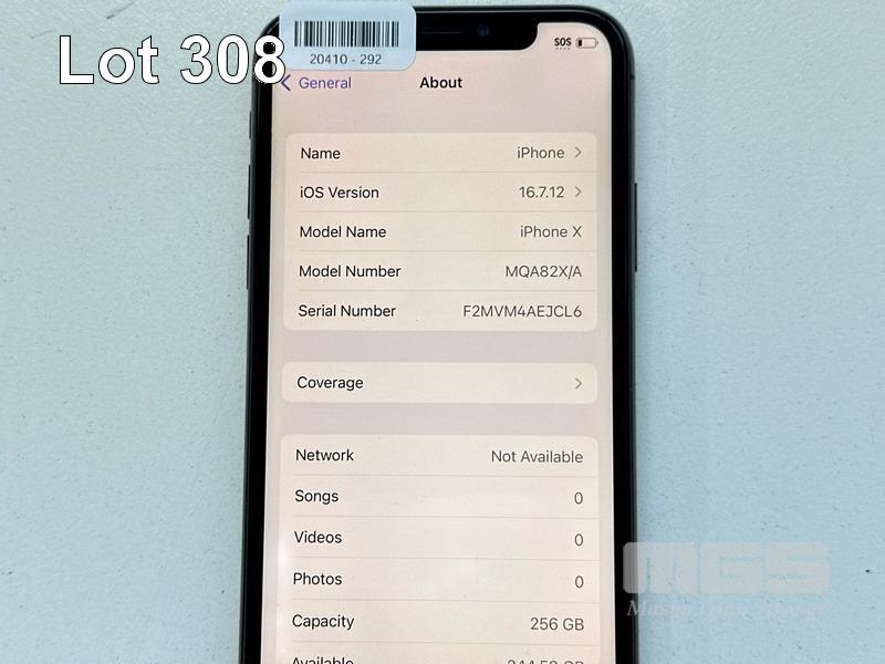 APPLE iPHONE X, 256GB, MODEL MQA82X/A, A1865, SPACE GREY, BATTERY HEALTH 100% (NO CABLE, NO CHARGER) (NOTE: CRACK LINE ON SCREEN, SCREEN BLEMISH, MINOR SCRATCHES ON SCREEN) S/N:F2MVM4AEJCL6