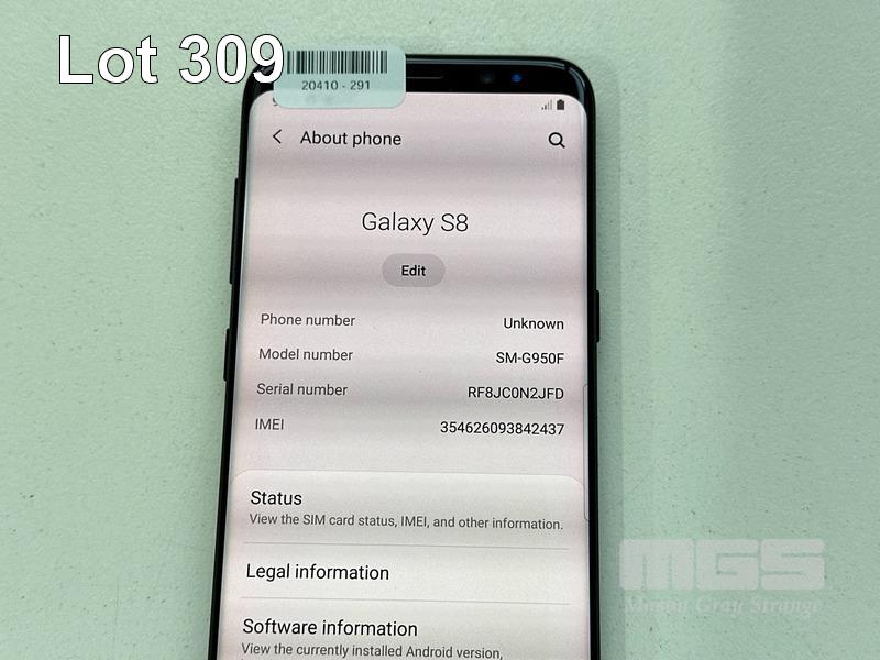 SAMSUNG GALAXY S8 SMARTPHONE, MODEL SM-G950F, 64GB (NO USB-C CABLE, NO CHARGER) S/N:RF8JC0N2JFD