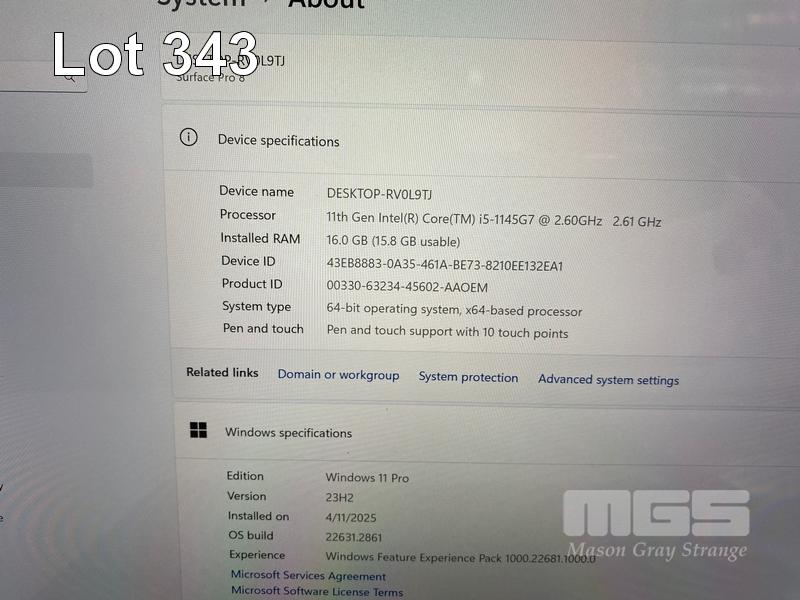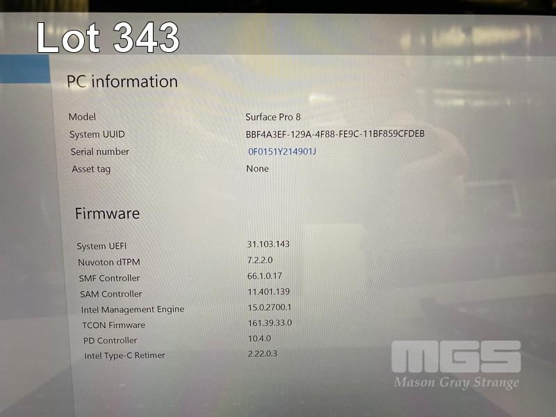 TABLET PC, MICROSOFT SURFACE PRO 8, MODEL 1982, CORE i5 1145G7 (11TH GEN) @ 2.6GHz, 16GB DDR4 RAM, 256GB NVMe M.2 SSD, 13" TOUCHSCREEN (2880x1920), INTEL IRIS Xe GRAPHICS, Wi-Fi, CELLULAR, BLUETOOTH, WINDOWS 11 PRO INSTALLED, KEYBOARD TYPE COVER, CASE & POWER SUPPLY S/N:0F0151Y214901J