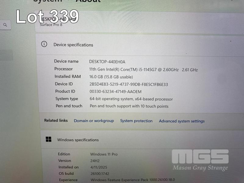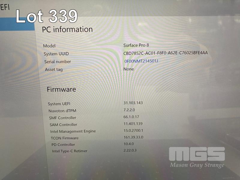 TABLET PC, MICROSOFT SURFACE PRO 8, MODEL 1982, CORE i5 1145G7 (11TH GEN) @ 2.6GHz, 16GB DDR4 RAM, 256GB NVMe M.2 SSD, 13" TOUCHSCREEN (2880x1920), INTEL IRIS Xe GRAPHICS, Wi-Fi, CELLULAR, BLUETOOTH, WINDOWS 11 PRO INSTALLED, KEYBOARD TYPE COVER, CASE & POWER SUPPLY S/N:0F00NMT214501J