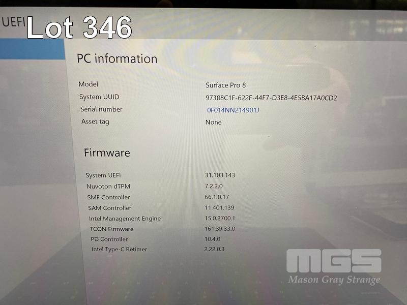 TABLET PC, MICROSOFT SURFACE PRO 8, MODEL 1982, CORE i5 1145G7 (11TH GEN) @ 2.6GHz, 16GB DDR4 RAM, 256GB NVMe M.2 SSD, 13" TOUCHSCREEN (2880x1920), INTEL IRIS Xe GRAPHICS, Wi-Fi, CELLULAR, BLUETOOTH, WINDOWS 11 PRO INSTALLED, KEYBOARD TYPE COVER, CASE & POWER SUPPLY S/N:0F014NN214901J