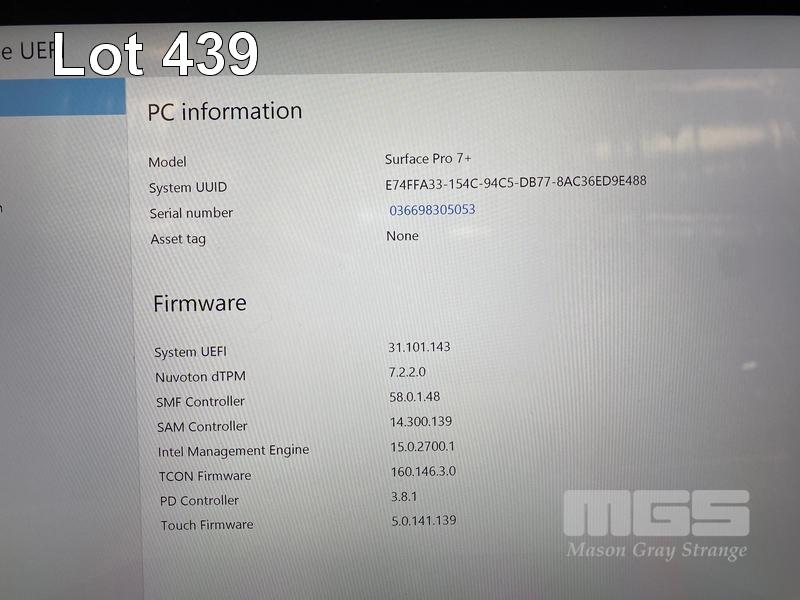 TABLET PC, MICROSOFT SURFACE PRO 7+, MODEL 1961, CORE i5 1135G7 (11TH GEN) @ 2.4GHz, 16GB DDR4 RAM, 256GB NVMe M.2 SSD, 12.3" TOUCHSCREEN (2736x1824), INTEL IRIS Xe GRAPHICS, Wi-Fi, CELLULAR, BLUETOOTH, WINDOWS 11 PRO INSTALLED, KEYBOARD TYPE COVER, CASE, POWER SUPPLY & CARRY BAG S/N:036698305053