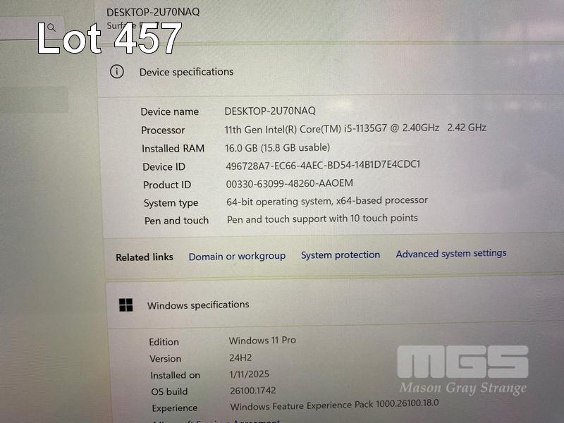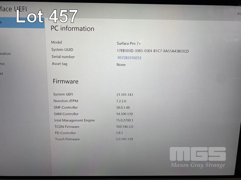 TABLET PC, MICROSOFT SURFACE PRO 7+, MODEL 1961, CORE i5 1135G7 (11TH GEN) @ 2.4GHz, 16GB DDR4 RAM, 256GB NVMe M.2 SSD, 12.3" TOUCHSCREEN (2736x1824), INTEL IRIS Xe GRAPHICS, Wi-Fi, CELLULAR, BLUETOOTH, WINDOWS 11 PRO INSTALLED, KEYBOARD TYPE COVER, CASE, POWER SUPPLY & CARRY BAG (NOTE: MARKS ON SCREEN) S/N:057283310253