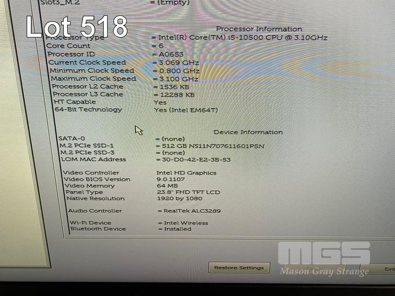 ALL-IN-ONE PC, DELL OPTIPLEX 7480, CORE i5 10500 (10TH GEN) @ 3.1GHz, 8GB DDR4 RAM, 512GB NVMe M.2 SSD, INBUILT 23.8" FHD WIDESCREEN (1920x1080), INTEL HD VIDEO, WEBCAM, 5 x USB, 1 x USB-C, Wi-Fi, BLUETOOTH, WINDOWS 11 HOME INSTALLED, KEYBOARD & MOUSE S/N:5SMWVD3