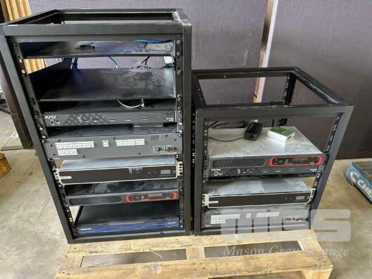 2 x DATA RACK FRAMES, 18RU, 12RU WITH CONTENTS INC AMX, EXTRON, POLYCOM REALPRESENCE GROUP 700, DATA PROBE, BIAMP TESIRA FORTE CI, POWER BOARDS ETC
