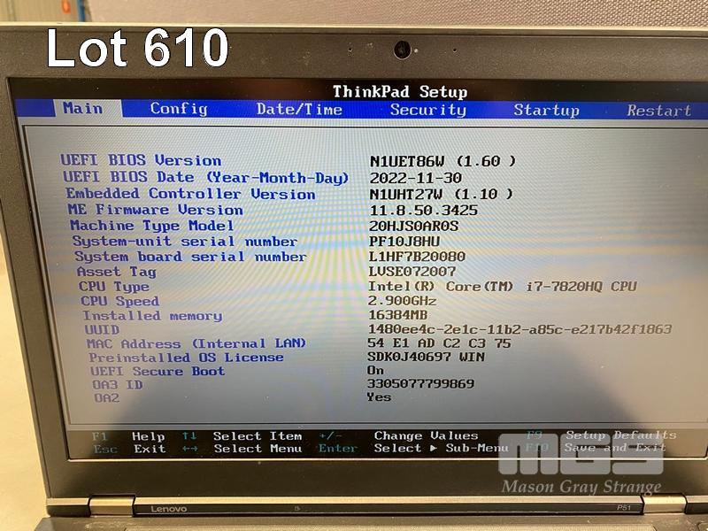 LAPTOP, LENOVO THINKPAD P51 MOBILE WORKSTATION, TYPE 20HJ, CORE i7 7820HQ (7TH GEN) @ 2.9GHz, 16GB DDR4 RAM, 500GB SSD, 15.6" WIDESCREEN (1920x1080), 4GB NVIDIA QUADRO M2200 VIDEO, Wi-Fi, BLUETOOTH, WINDOWS 10 PRO INSTALLED (NO POWER SUPPLY) S/N:PF10J8HU