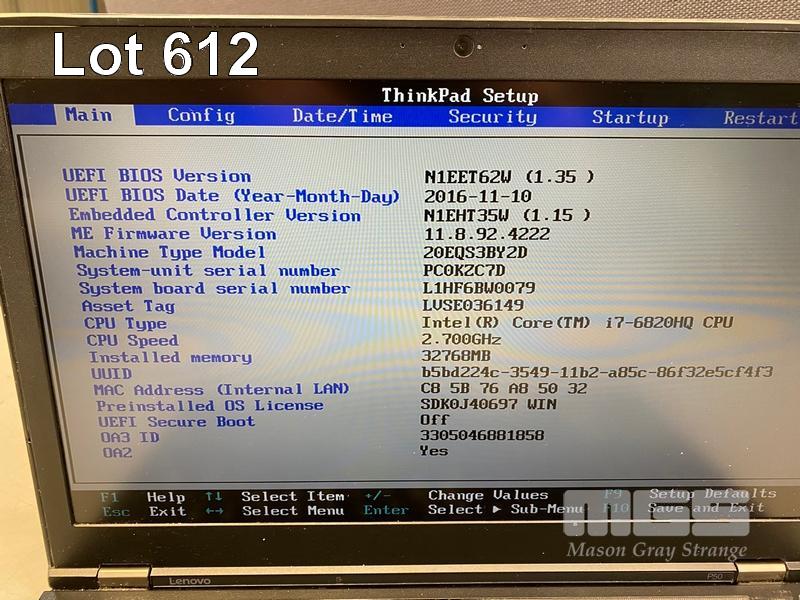 LAPTOP, LENOVO THINKPAD P50 MOBILE WORKSTATION, TYPE 20EQ, CORE i7 6820HQ (6TH GEN) @ 2.7GHz, 32GB DDR4 RAM, 512GB M.2 SSD, 15.6" WIDESCREEN (1920x1080), 4GB NVIDIA QUADRO M2000M VIDEO, Wi-Fi, BLUETOOTH, WINDOWS 10 PRO INSTALLED (NO POWER SUPPLY) (NOTE: MARKS ON SCREEN, KEYS ON KEYBOARD WORN, RUBBER SEAL LOOSE) S/N:PC0KZC7D
