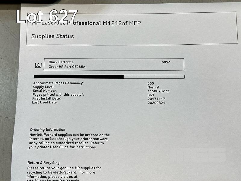 PRINTER, HP LASERJET M1212nf MFP, USB, NETWORK, 26,296 PAGES (TEST PAGE ATTACHED) S/N:CNG9CDQ12R
