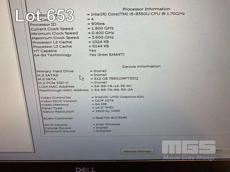 LAPTOP, DELL LATITUDE 5490, CORE i5 8350U (8TH GEN) @ 1.7GHz, 8GB DDR4 RAM, 512GB M.2 SSD, 14" WIDESCREEN (1920x1080), INTEL UHD GRAPHICS 620, Wi-Fi, BLUETOOTH, WINDOWS 11 HOME INSTALLED & POWER SUPPLY S/N:5BSWRQ2