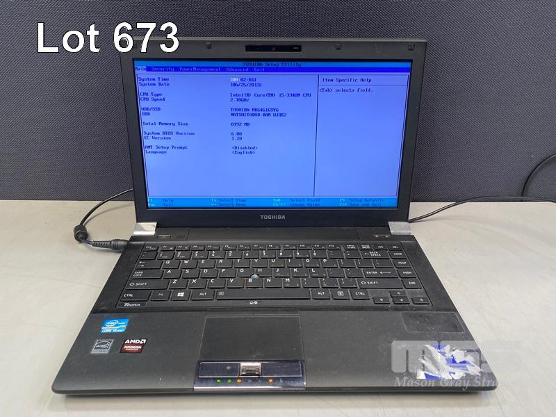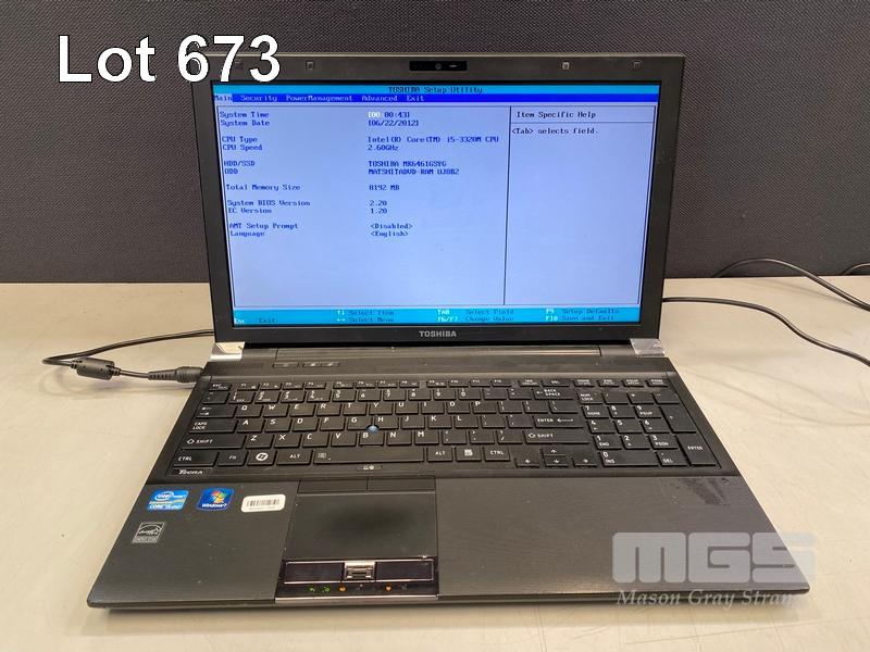 3 x LAPTOPS INC. - TOSHIBA TECRA R950, CORE i5 3320M @ 2.6GHz, 8GB RAM, 640GB HDD - TOSHIBA TECRA R940, CORE i5 3340M @ 2.7GHz, 8GB RAM, 640GB HDD - TOSHIBA TECRA R940, CORE i7 3520M @ 2.9GHz, 8GB RAM, 120GB SSD (WITH POWER SUPPLIES) S/N:8C035180H, 1E037015H, ZC022027H