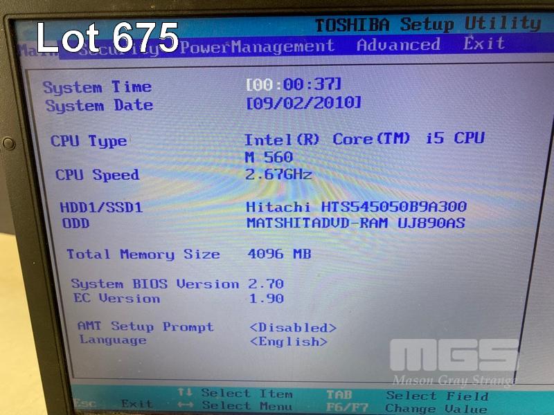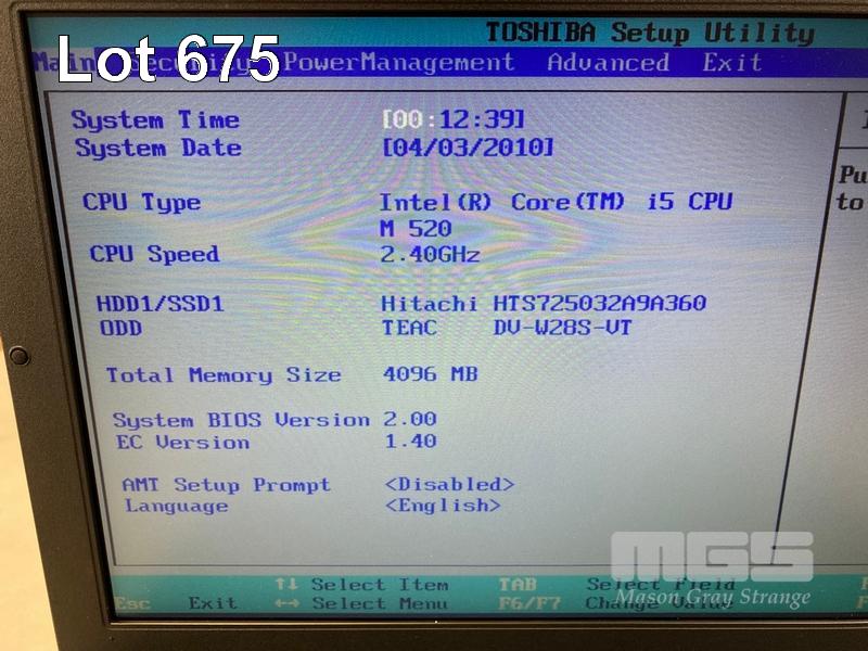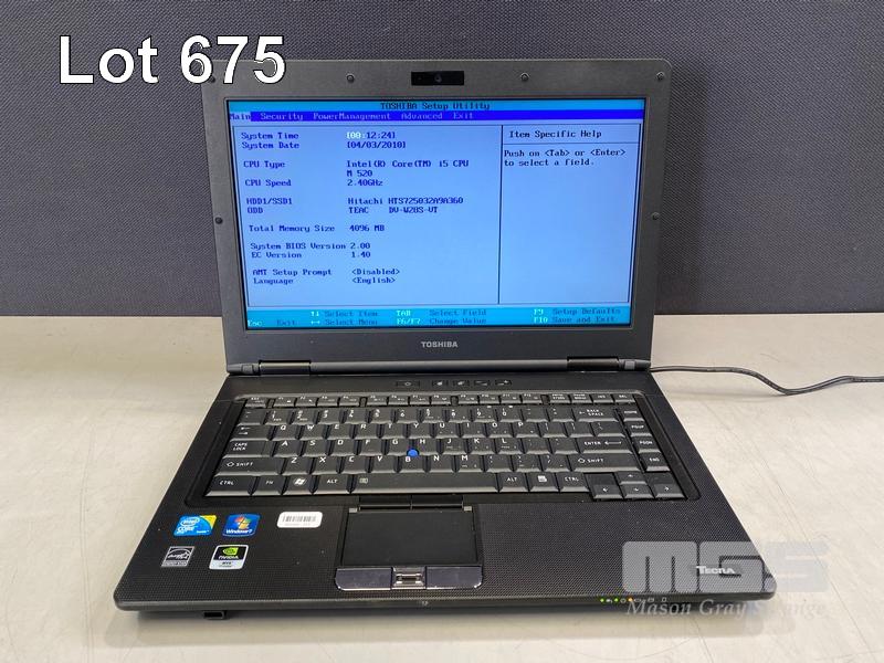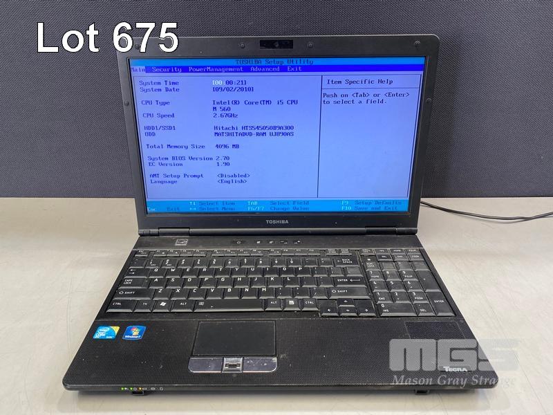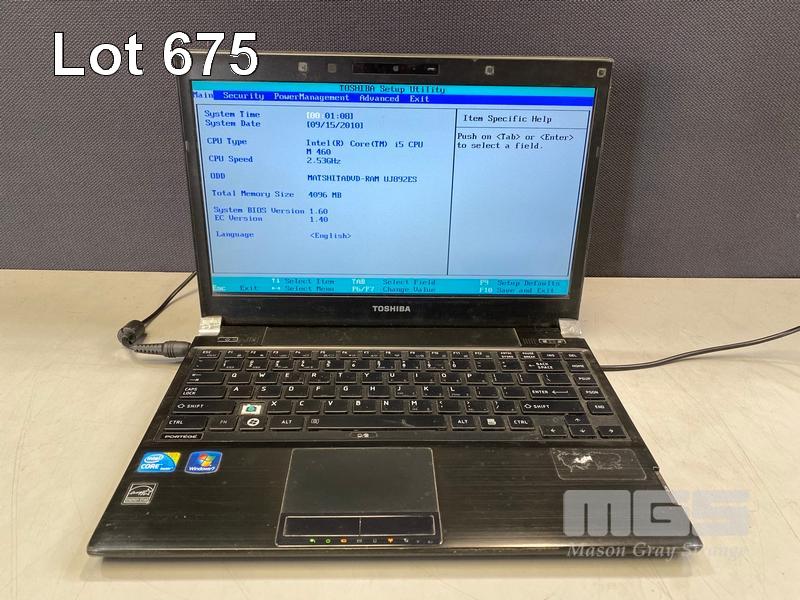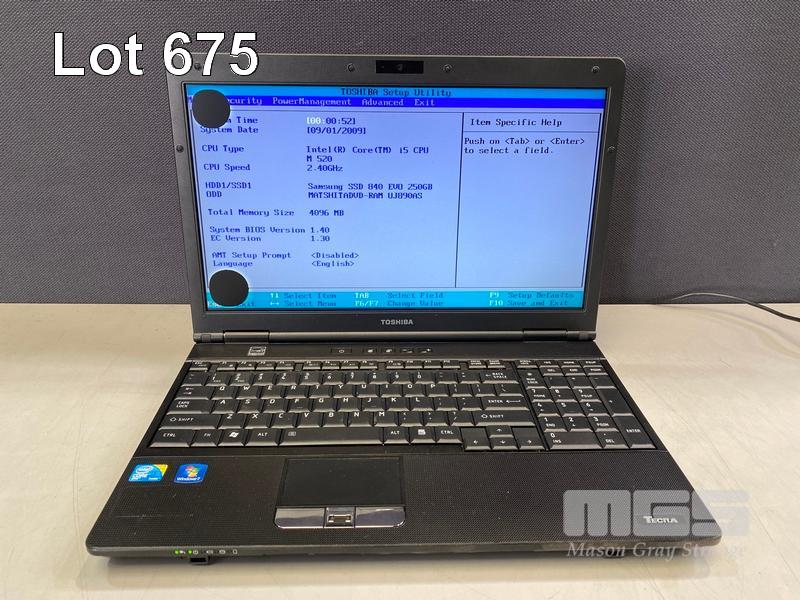9 x LAPTOPS INC. - TOSHIBA TECRA M11, CORE i5 M520 @ 2.4GHz, 4GB RAM, 320GB HDD - TOSHIBA TECRA M11, CORE i5 M520 @ 2.4GHz, 4GB RAM, NO HDD - TOSHIBA TECRA A11, CORE i5 M560 @ 2.67GHz, 4GB RAM, 500GB HDD - TOSHIBA TECRA A11, CORE i5 M520 @ 2.4GHz, 4GB RAM, 250GB SSD (BLACK SPOTS ON SCREEN) - TOSHIBA PORTEGE M800, CORE 2 DUO P8600 @ 2.4GHz, 4GB RAM, 250GB HDD - TOSHIBA SATELLITE PRO U500, CORE i5 430M @ 2.26GHz, 4GB RAM, 500GB HDD - TOSHIBA PORTEGE R700, CORE i5 M460 @ 2.53GHz, 4GB RAM, NO HDD - TOSHIBA PORTEGE M500, 1.5GB RAM, 60GB HDD - TOSHIBA PORTEGE R600, 3GB RAM, NO HDD (WITH POWER SUPPLIES) S/N:4A078918H, 6A015670H, 9A082697H, 1A123655H, X8080974W, 5A017253R, XA110194H, 76173243H, 2A054945H