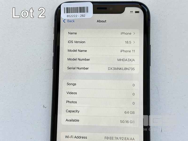 APPLE iPHONE 11, 64GB, MODEL MHDA3X/A, A2221, BLACK, BATTERY HEALTH 100% (NO CABLE, NO CHARGER) (NOTE: MINOR SCRATCHES ON SCREEN) S/N:DX3MNKL0N735