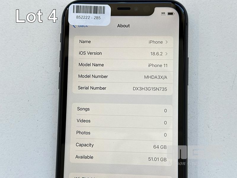 APPLE iPHONE 11, 64GB, MODEL MHDA3X/A, A2221, BLACK, BATTERY HEALTH 100% (NO CABLE, NO CHARGER) (NOTE: MINOR SCRATCHES ON SCREEN) S/N:DX3H3G1SN735