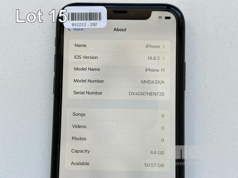 APPLE iPHONE 11, 64GB, MODEL MHDA3X/A, A2221, BLACK, BATTERY HEALTH 91% (NO CABLE, NO CHARGER) S/N:DX4GN7HEN735