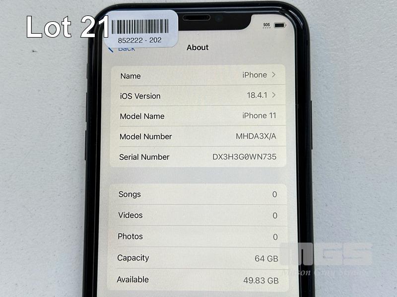 APPLE iPHONE 11, 64GB, MODEL MHDA3X/A, A2221, BLACK, BATTERY HEALTH 89% (NO CABLE, NO CHARGER) S/N:DX3H3G0WN735