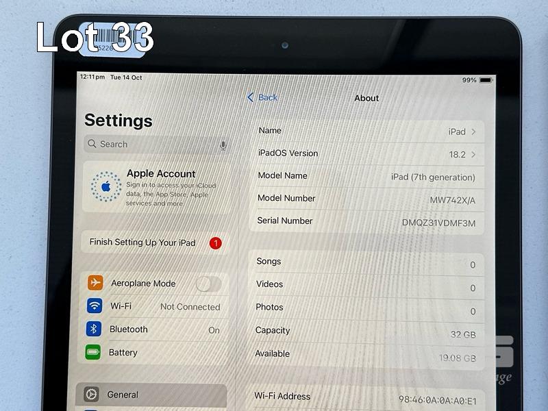 APPLE iPAD 7TH GEN, 32GB, Wi-Fi, SPACE GREY, MODEL MW742X/A, A2197 WITH COVER (NO CABLE, NO CHARGER) S/N:DMQZ31VDMF3M