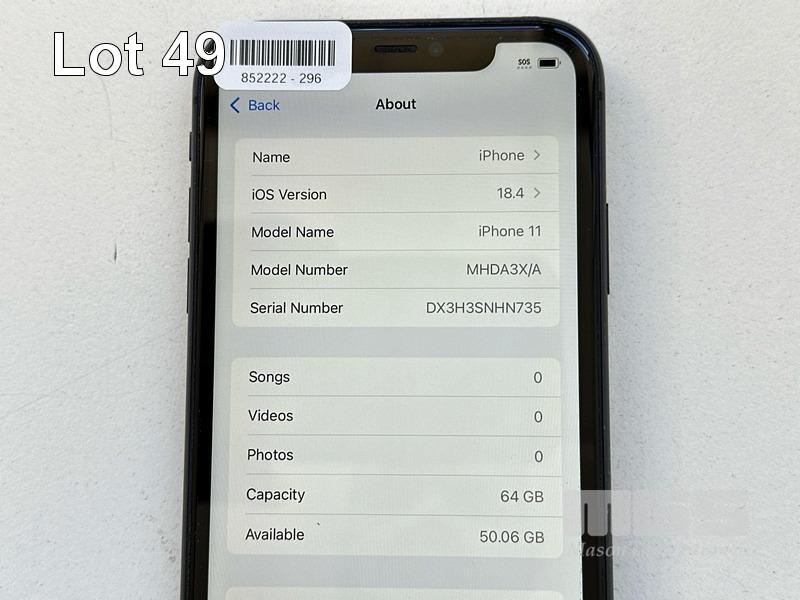 APPLE iPHONE 11, 64GB, MODEL MHDA3X/A, A2221, BLACK, BATTERY HEALTH 86% (NO CABLE, NO CHARGER) S/N:DX3H3SNHN735
