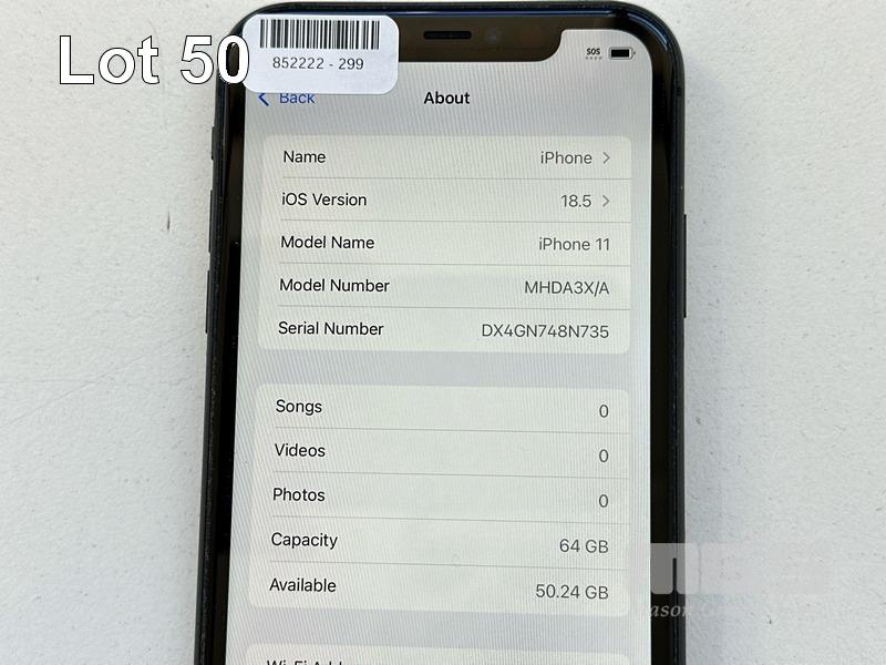 APPLE iPHONE 11, 64GB, MODEL MHDA3X/A, A2221, BLACK, BATTERY HEALTH 85% (NO CABLE, NO CHARGER) S/N:DX4GN748N735