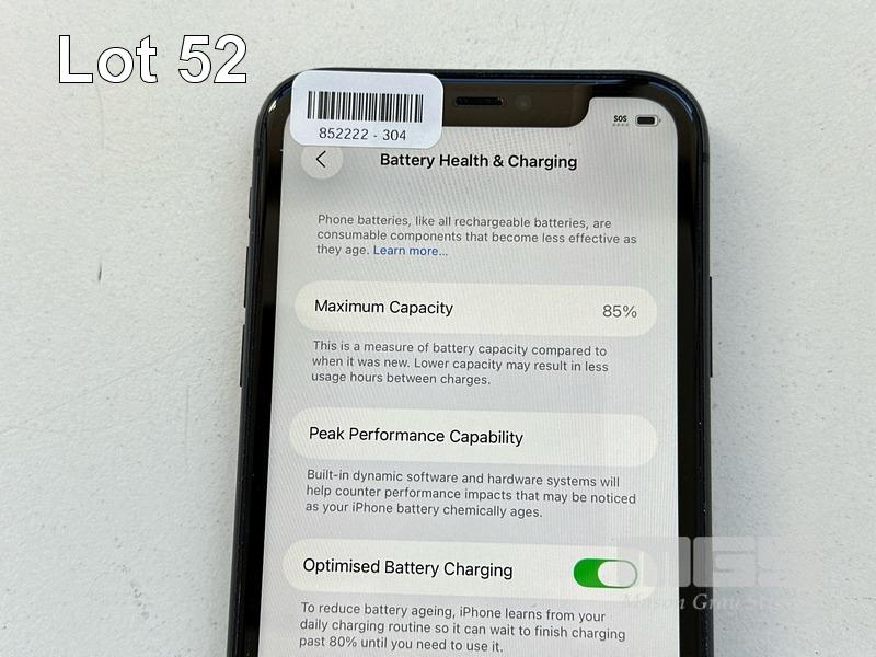 APPLE iPHONE 11, 64GB, MODEL MHDA3X/A, A2221, BLACK, BATTERY HEALTH 85% (NO CABLE, NO CHARGER) S/N:DX3H3TGVN735