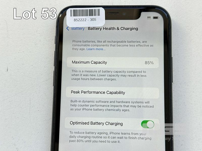 APPLE iPHONE 11, 64GB, MODEL MHDA3X/A, A2221, BLACK, BATTERY HEALTH 85% (NO CABLE, NO CHARGER) S/N:DX3GQD7EN735
