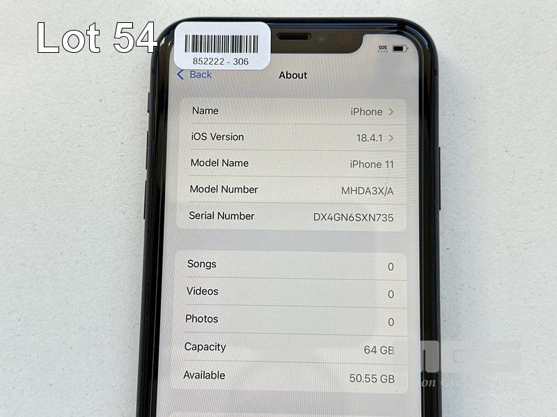 APPLE iPHONE 11, 64GB, MODEL MHDA3X/A, A2221, BLACK, BATTERY HEALTH 85% (NO CABLE, NO CHARGER) S/N:DX4GN6SXN735