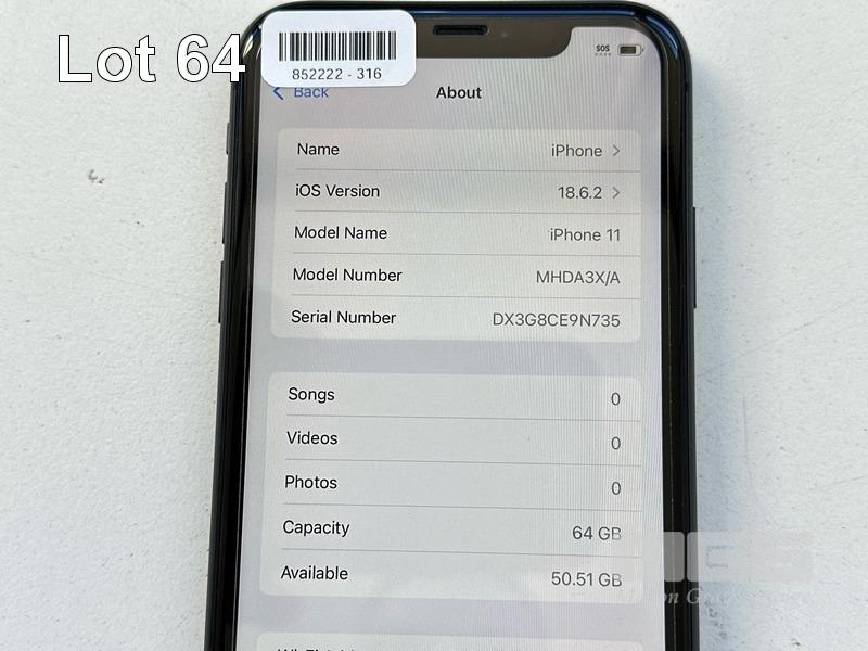 APPLE iPHONE 11, 64GB, MODEL MHDA3X/A, A2221, BLACK, BATTERY HEALTH 83% (NO CABLE, NO CHARGER) S/N:DX3G8CE9N735
