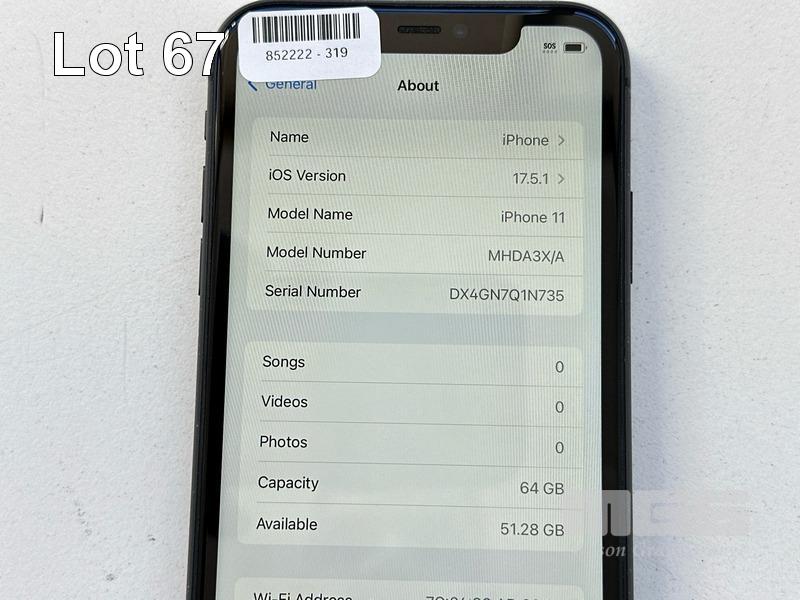 APPLE iPHONE 11, 64GB, MODEL MHDA3X/A, A2221, BLACK, BATTERY HEALTH 83% (NO CABLE, NO CHARGER) S/N:DX4GN7Q1N735