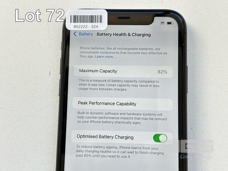 APPLE iPHONE 11, 64GB, MODEL MHDA3X/A, A2221, BLACK, BATTERY HEALTH 82% (NO CABLE, NO CHARGER) S/N:DX4GN7EKN735