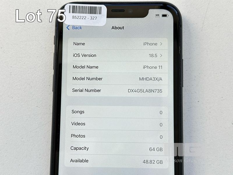 APPLE iPHONE 11, 64GB, MODEL MHDA3X/A, A2221, BLACK, BATTERY HEALTH 82% (NO CABLE, NO CHARGER) S/N:DX4G5LA8N735