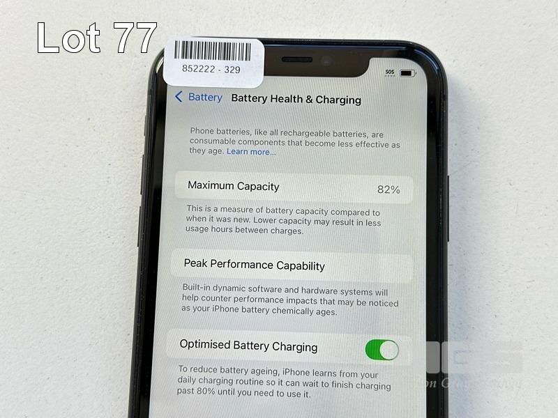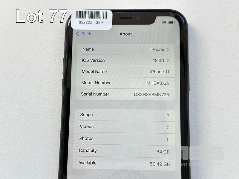 APPLE iPHONE 11, 64GB, MODEL MHDA3X/A, A2221, BLACK, BATTERY HEALTH 82% (NO CABLE, NO CHARGER) S/N:DX3H3SSMN735