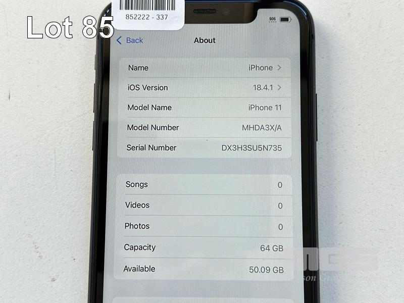 APPLE iPHONE 11, 64GB, MODEL MHDA3X/A, A2221, BLACK, BATTERY HEALTH 81%