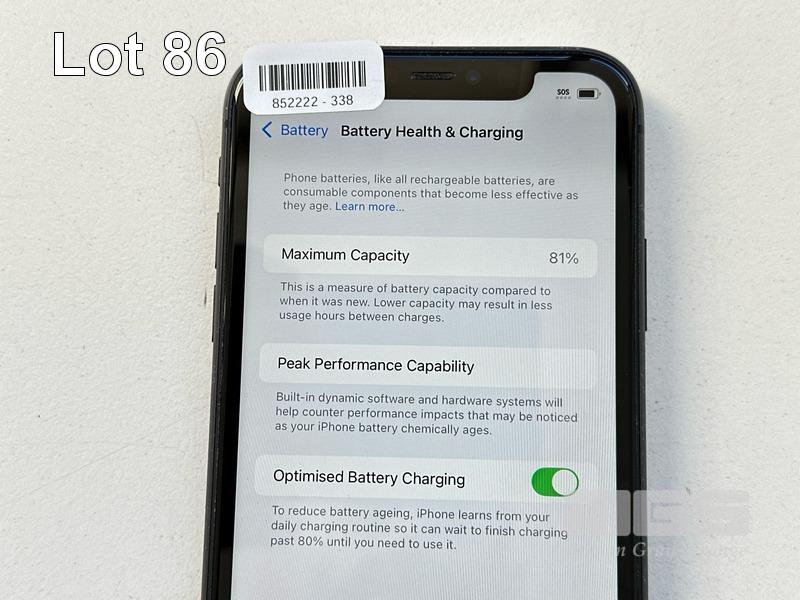 APPLE iPHONE 11, 64GB, MODEL MHDA3X/A, A2221, BLACK, BATTERY HEALTH 81% (NO CABLE, NO CHARGER) S/N:DX3G8BRBN735