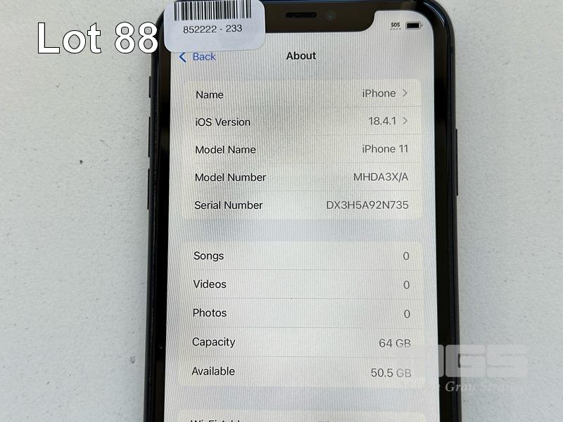 APPLE iPHONE 11, 64GB, MODEL MHDA3X/A, A2221, BLACK, BATTERY HEALTH 81% (NO CABLE, NO CHARGER) S/N:DX3H5A92N735