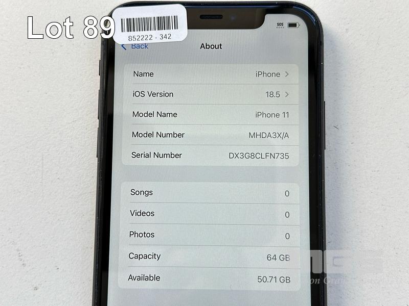 APPLE iPHONE 11, 64GB, MODEL MHDA3X/A, A2221, BLACK, BATTERY HEALTH 80% (NO CABLE, NO CHARGER) S/N:DX3G8CLFN735