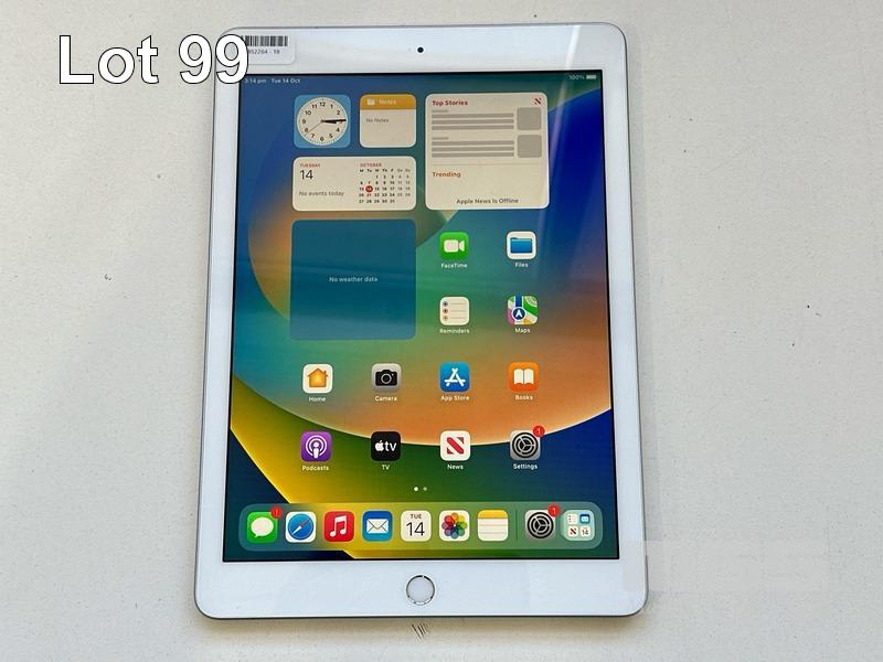 APPLE iPAD 5TH GEN, 32GB, Wi-Fi, SILVER, MODEL MP2G2X/A, A1822 (NO CABLE, NO CHARGER) S/N:DMPTWH6XHLFC